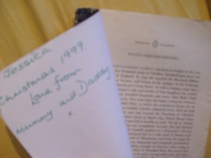 My Christmas present 1999, a copy of Wives and Daughters by Mrs Gaskell. The label on the parcel said “From a wife, to a daughter”.