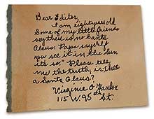 Dear Editor— I am 8 years old. Some of my little friends say there is no Santa Claus. Papa says, “If you see it in The Sun, it’s so.” Please tell me the truth, is there a Santa Claus? Virginia O’Hanlon