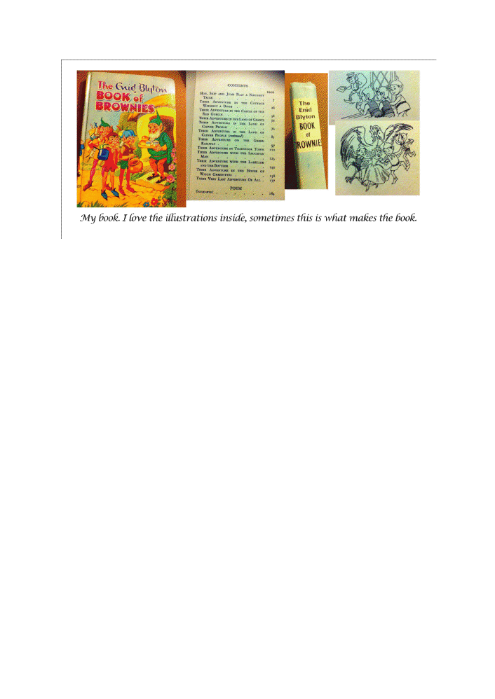 I think what Enid Blyton tries to say in this book, is that naughtiness or selfishness doesn’t pay and that to do good deeds for others pays more and earns respect from others. The story starts off with the brownies being naughty and naive and then when they set off on their adventures without realising it they slowly become braver and can face anything that is thrown at them by working together and thinking things through. And in the end it proved anyone can change given a chance, even the unexpected ones.