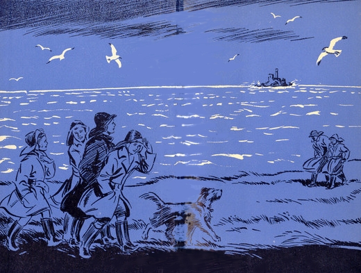 The children are driven down by their parents stopping off for a picnic on the way. They get really excited about seeing the sea and I remember as a child sat in the back of the car on a day trip eager to see the sea suddenly appear. It always felt like a different part of the world.