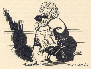 So on to Scamp. This story is about two children called Kenneth and Joan, who get to choose a puppy from a litter to take home. They sit and play with the puppies and decide to choose a small one with a black patch over his ear as he is being quite mischievous. They think it will be fun and name him Scamp.