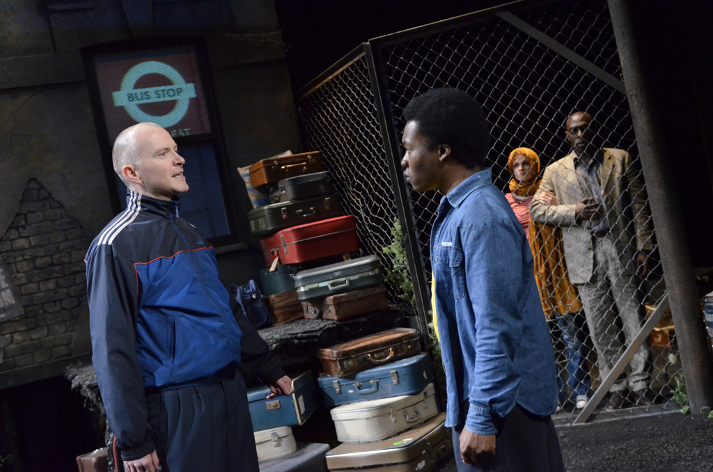 Before I go onto the review proper, I must take a moment to admire the inventive set design. The creative use of suitcases as a motif and as the building blocks for the set, portrayed not only the transient nature of the accommodation provided in England but also allowed a constant visual reminder of Alem’s sense of otherness. He is foreign with every breath; living his life out of a suitcase; always ready to run.