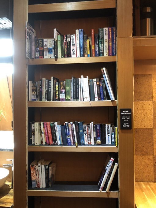 The cafe now has its own commode (rather than sharing with Monro House) and it’s got books!!!
