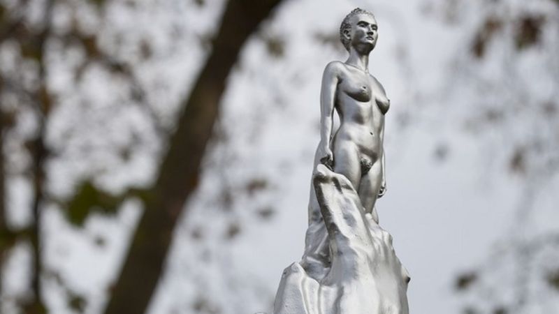 Her statue is to be unveiled today. And unveiled is the right word. For some inexplicable reason, the ‘mother of feminism’ is depicted nude. Naked as a jay bird. Starkers.