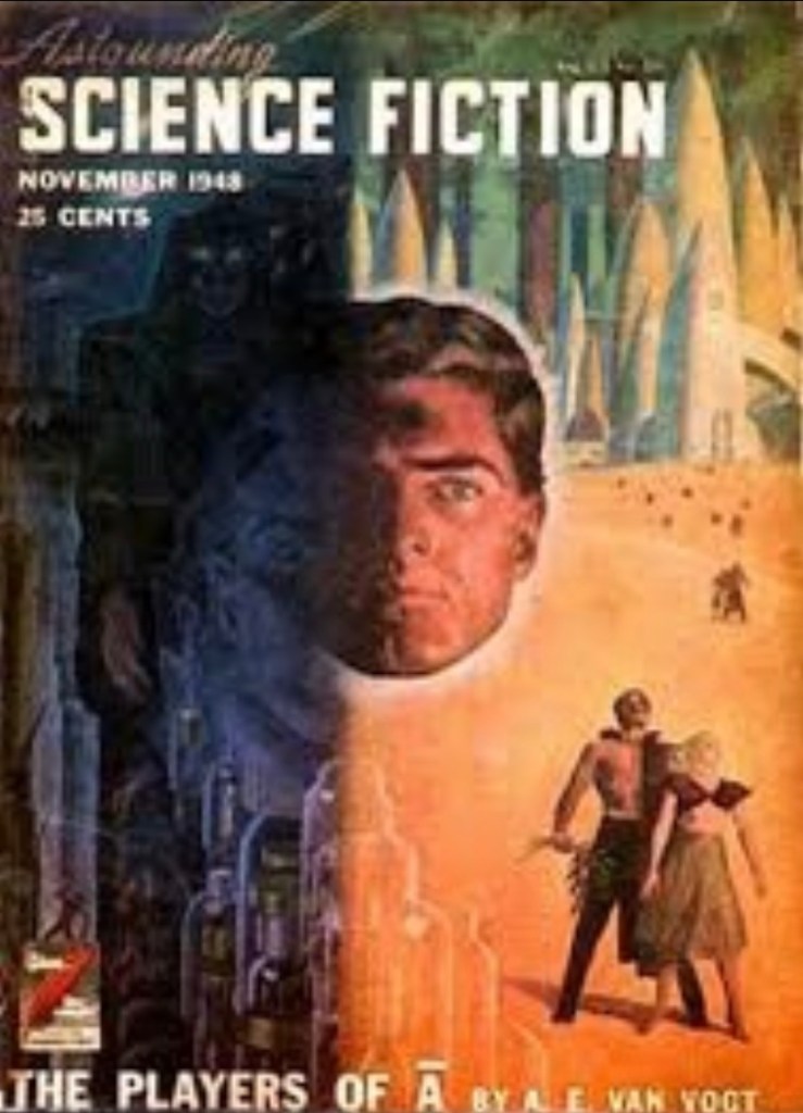 In the November 1948 issue, Campbell published a letter to the editor by a reader named Richard A. Hoen that contained a detailed ranking of the contents of an issue “one year in the future”. Campbell went along with the joke and contracted stories from most of the authors mentioned in the letter that would follow the Hoen’s imaginary story titles. One of the best-known stories from that issue is “Gulf“, by Heinlein. Other stories and articles were written by some of the most famous authors of the time: Asimov, Sturgeon, del Rey, van Vogt, de Camp, and the astronomer R. S. Richardson