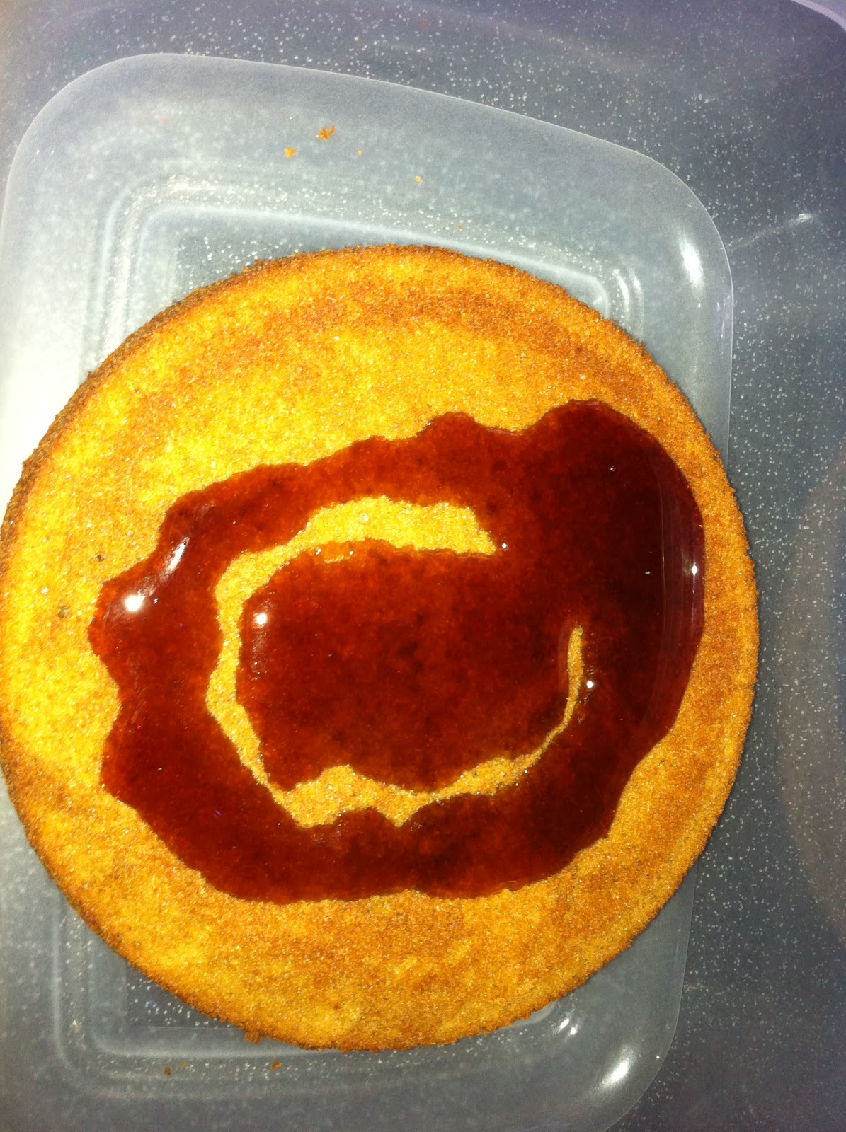 5. Pour into 18cm greased and lined cake tins. R did hers two tins at a time, being careful not to use too much of the mixture to ensure evenly sized layers.